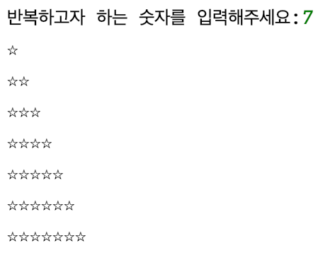 7을 입력해보니 별이 1개부터 7개까지 찍히고 실행이 끝났다ㅎㅎ